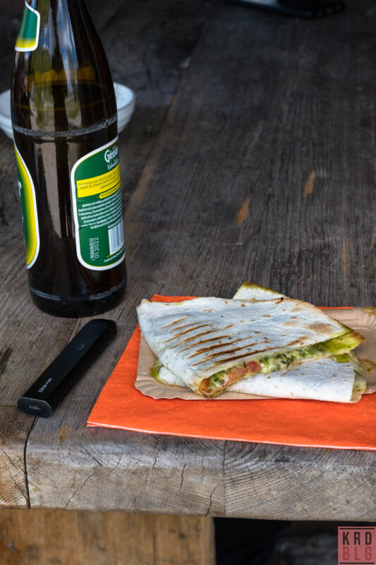 Bei dieser kurzen, fast schon seltsam anmutenden Exkursion in die „Aussengastronomie“, trafen wir auch auf einen alten Bekannten, den ich dank Pandemie noch nie live und in Farbe sah, der aber auch das feine Wetter nutzte um sich eine Hopfenkaltschale zu gönnen.