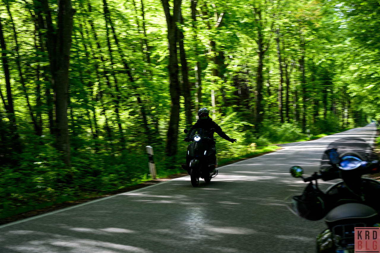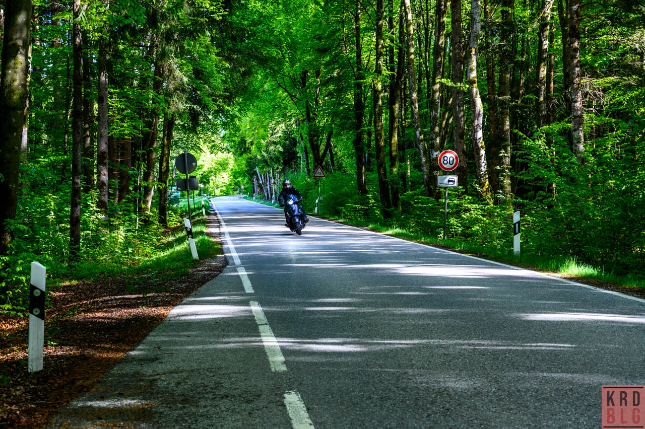 Die wenigen Tropfen beim verlassen der Heimat wurden gekonnt ignoriert, die Sonnenstrahlen bei der Kurverei über Land jedoch umso intensiver genossen. Noch hat der Mairegen wohl nicht seinen letzten Auftritt gehabt, umso schöner, wenn man ab und an mal die kleine Italienerin um den Block lenken kann.