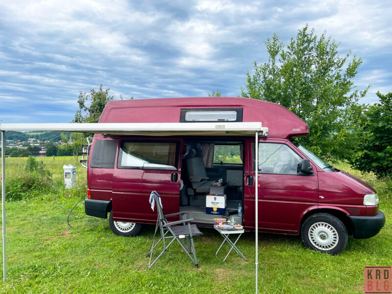 Die Stellplatzkollegen hatten sich gerade so einen sündhaft teures T6.1 Bulli California zugelegt und sind nun damit auf dem Weg in den Urlaub. Wobei, eigentlich ist das ja schon der Urlaub.
