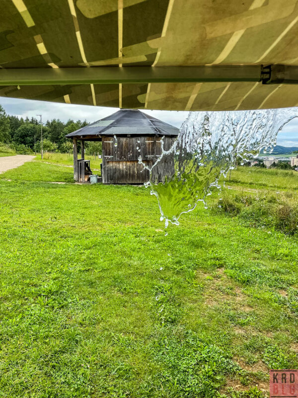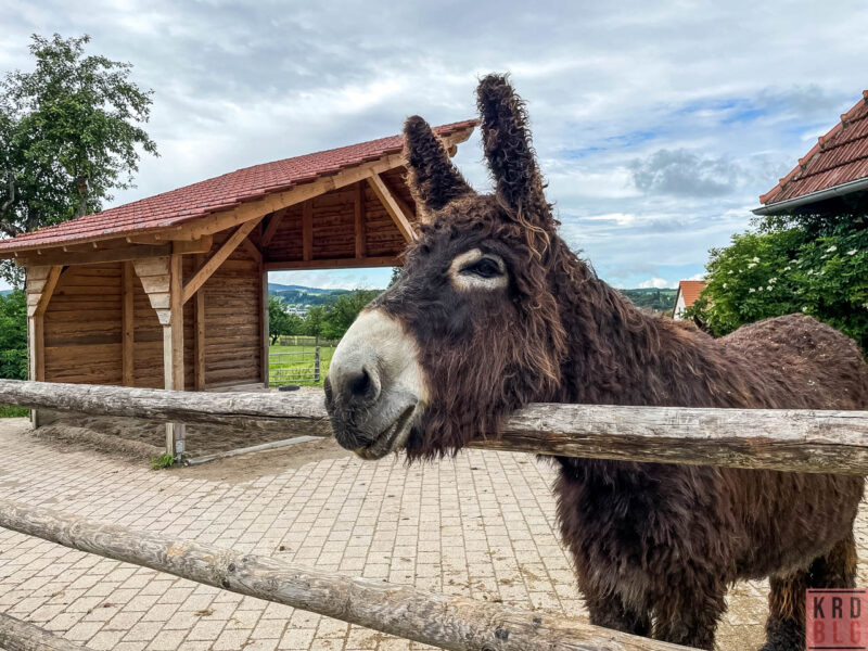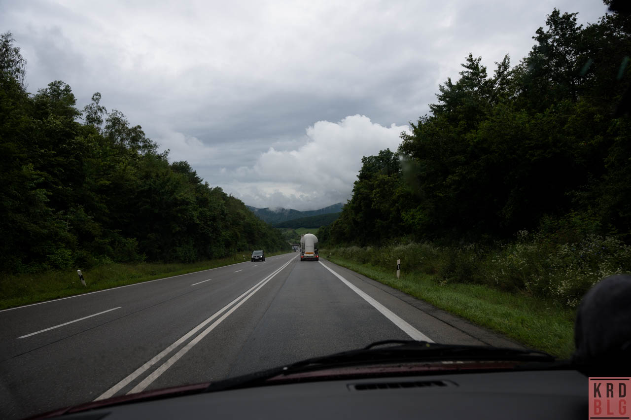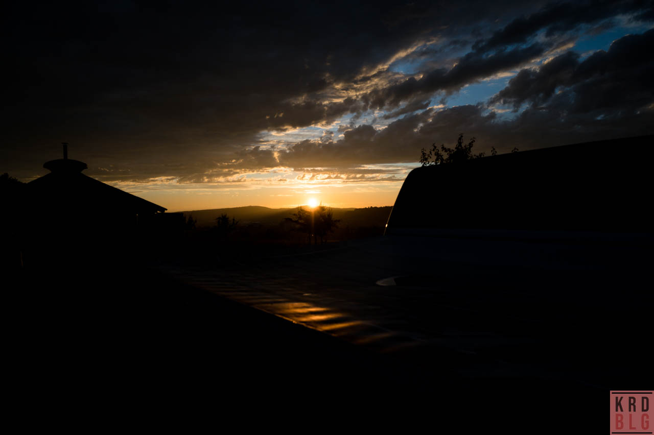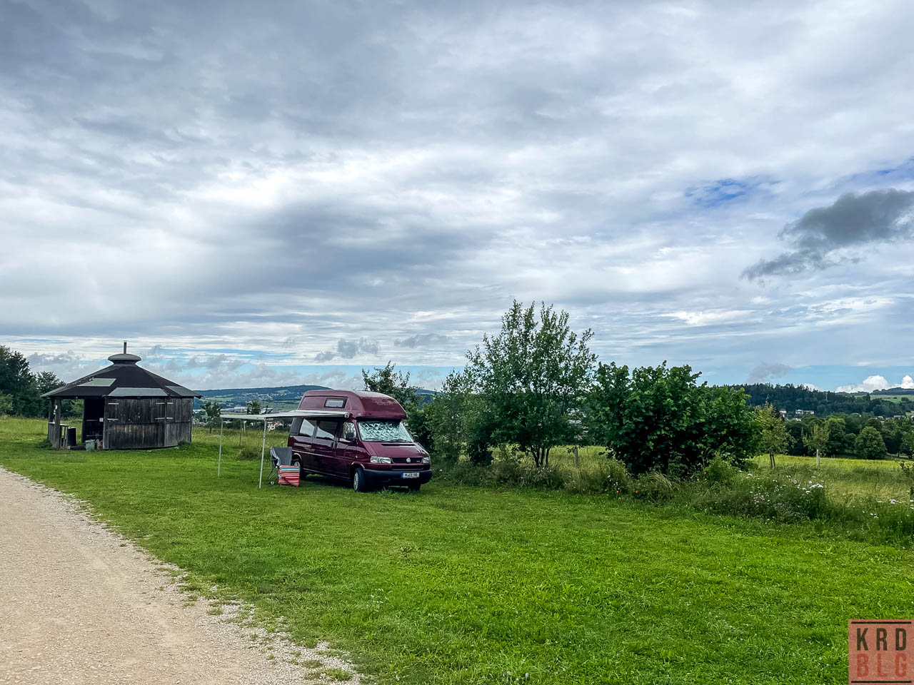 Die Anreise erfolgte in mehren Etappen. Am Dienstag gemütlich, denn richtig fiesen Antritt, vor allem bei Steigung, hat die alte Damen nicht, bis ins Schwäbische. Das Hofgut Hopfenburg bietet neben Wasser, Abwasser, Strom auch abends eine leckere Mahlzeit an und mit Blick auf die schwäbische Alb kann man so den Wagen erstmal ordentlich unter die Lupe nehmen und nach Lust und Laune das Innenleben erkunden, ohne das ein Nachbar irritiert die Szenerie beobachtet.