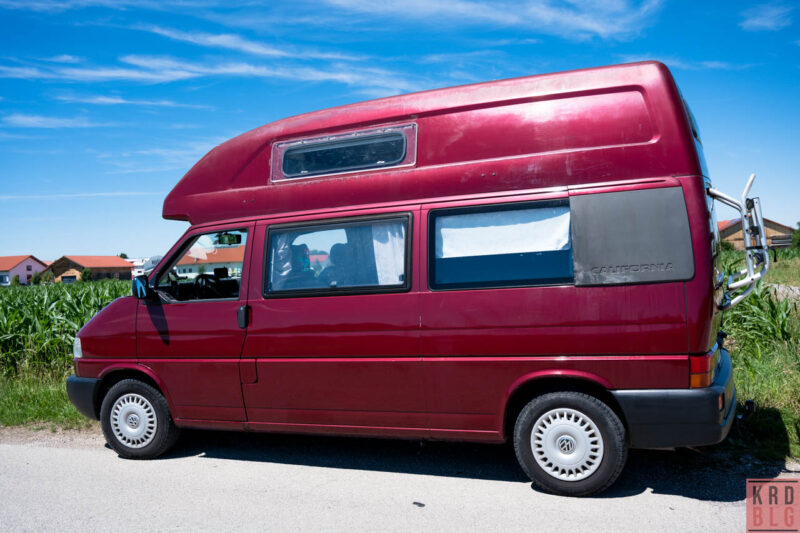 nun, eigentlich läuft der 98er Volkswagen T4 California Exclusive unter dem Kosenamen „Brisket“, wie ein rechteckiges, schmackhaftes Stück Fleisch. Nun ist die Namensgebung nach einer Rinderbrust sicher nicht jedermanns Sache, „rote Rumpel“ umschreibt die Wohn- und Fahrkiste aber auch recht gut, zumal es sich defintiv um einen Kosenamen handelt.