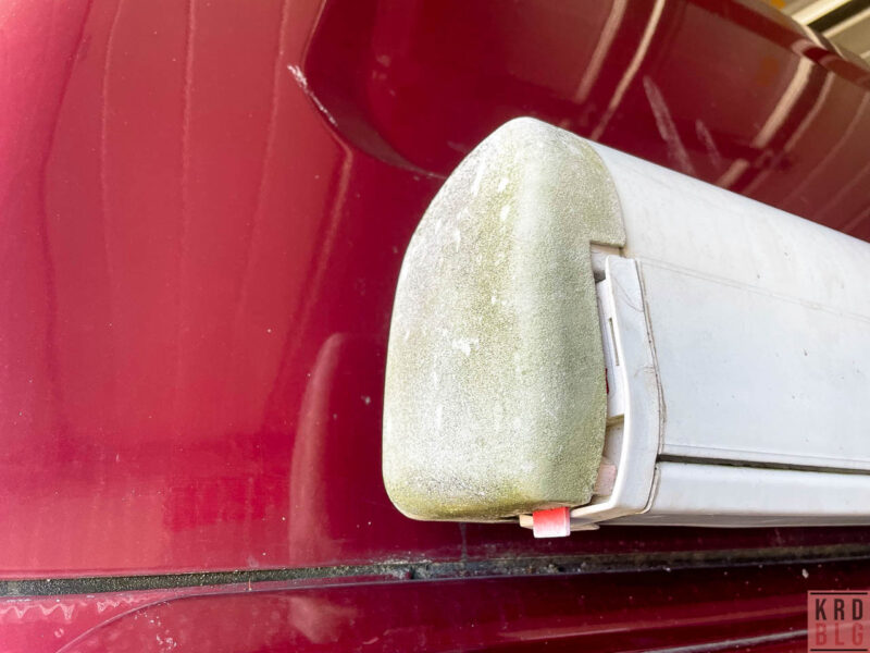 Bei der Gelegenheit wurden auch die porösen Endkappen der Markise getauscht, die sind wortwörtlich beim abnehmen in kleine Stücke zerbröselt.