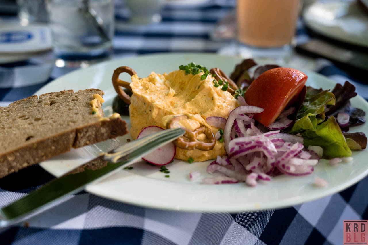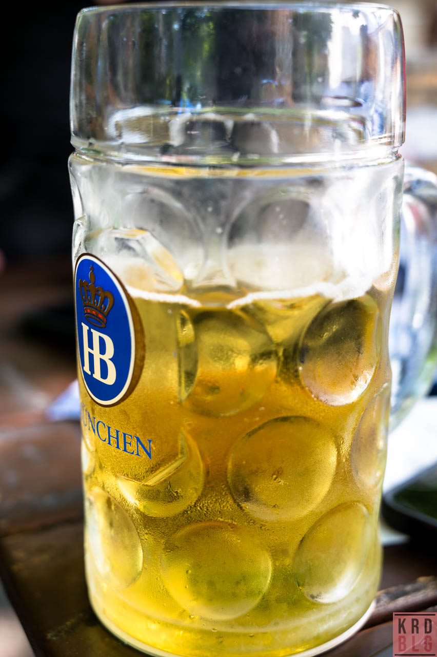 Recht zeitig nach dem Zieleinlauf an der Pinakothek der Moderne löste sich der Corso auf und die Menschen strömten in die Biergärten und Eiscafes der Stadt. Unsere kleine Truppe zog es in den Hofbräukeller, der entgegen seines Namens, kein Keller, sondern ein Biergarten ist und bei Obatzdem und Weisswürst nebst einer gestreckten isotonischen Sportlerbrause (aka Radlermass) lies es sich trefflich entspannen.