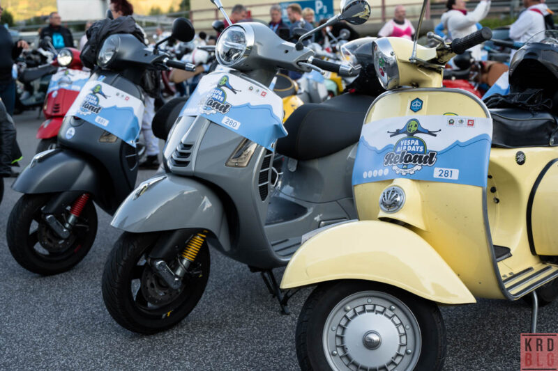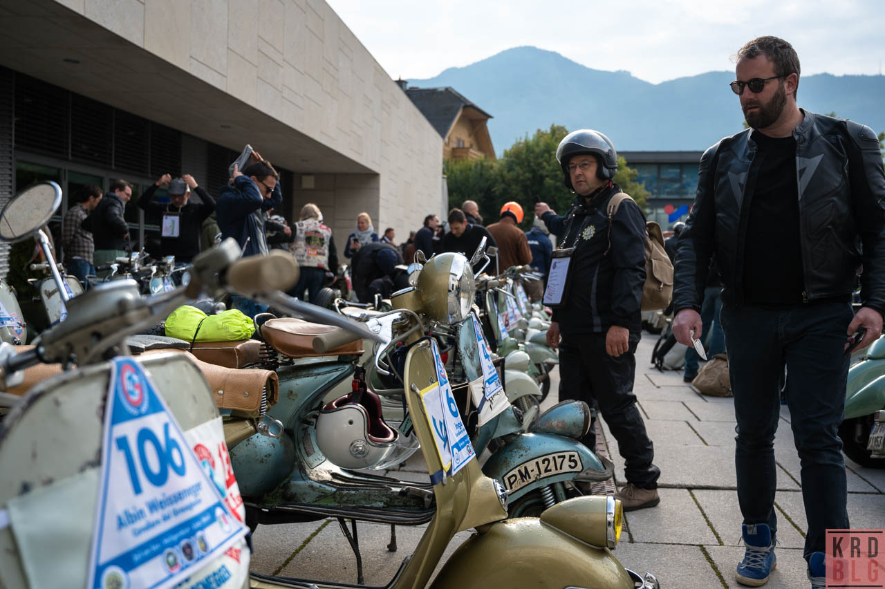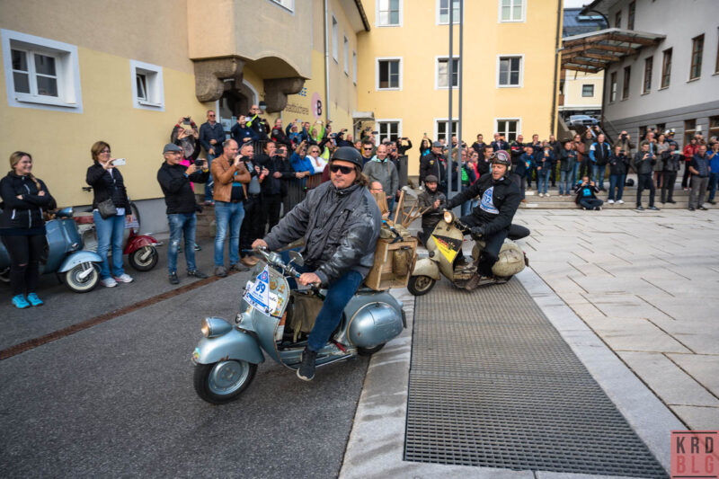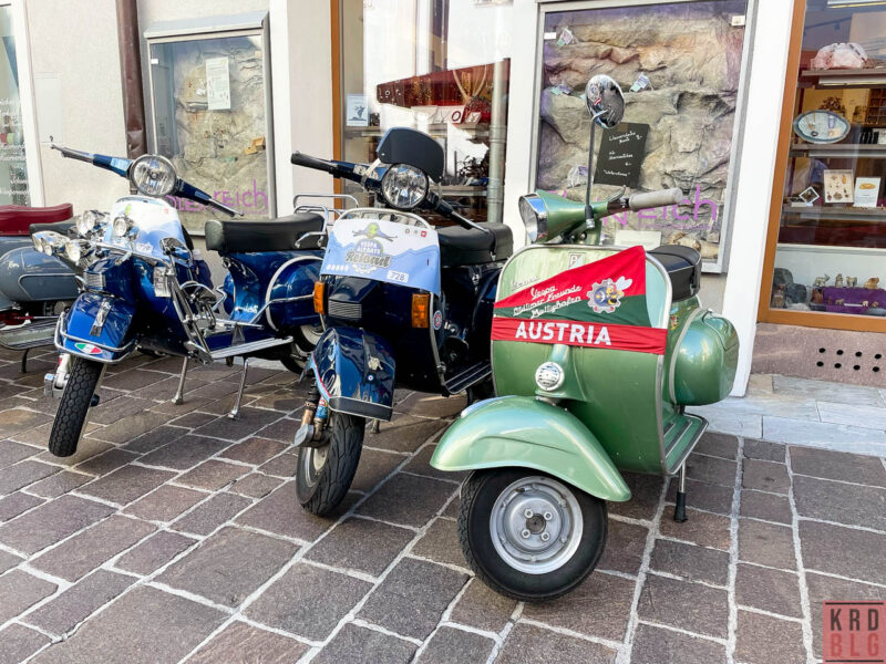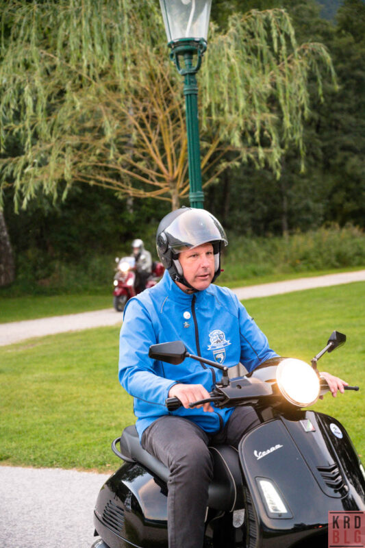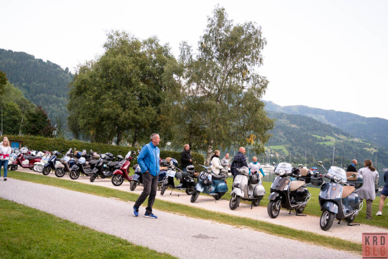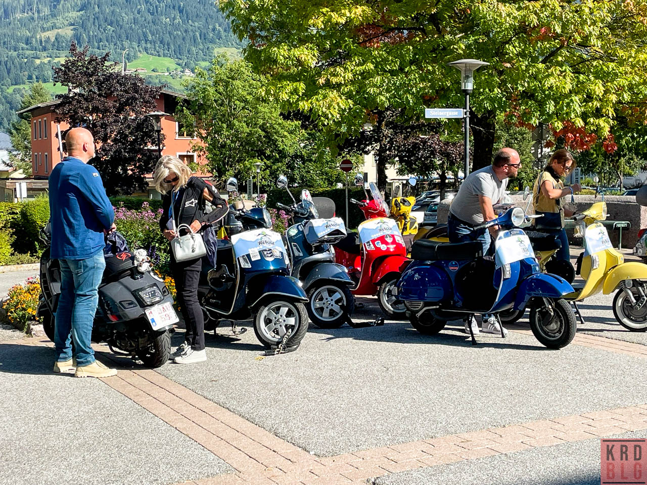 Zieht man also diverse Maut, das T-Shirt, Sticker, Plaketten, Schildbanner und Co aus dem Begrüssungspaket ab, relativiert sich das Nenngeld wieder und bietet dem, der es mag, einen netten Gegenwert. Nach dem Check-In, bei dem man sein Begrüssungssackerl erhält, bekommt man auch das Schildbanner für die Vespa, mit der man während der Veranstaltung direkt in die Fussgängerzone einfahren kann. So muss man nicht umständlich irgendwo einen Platz suchen sondern stellt seine Karre einfach neben das Eiscafe und hat Helm, Jacke, etc. im Blick (nicht dass das notwendig wäre) und kann so von Cafe zu Kneipe und weiter ins Restaurant rollern und hat seinen Kram immer dabei. Eine sehr praktische Regelung.