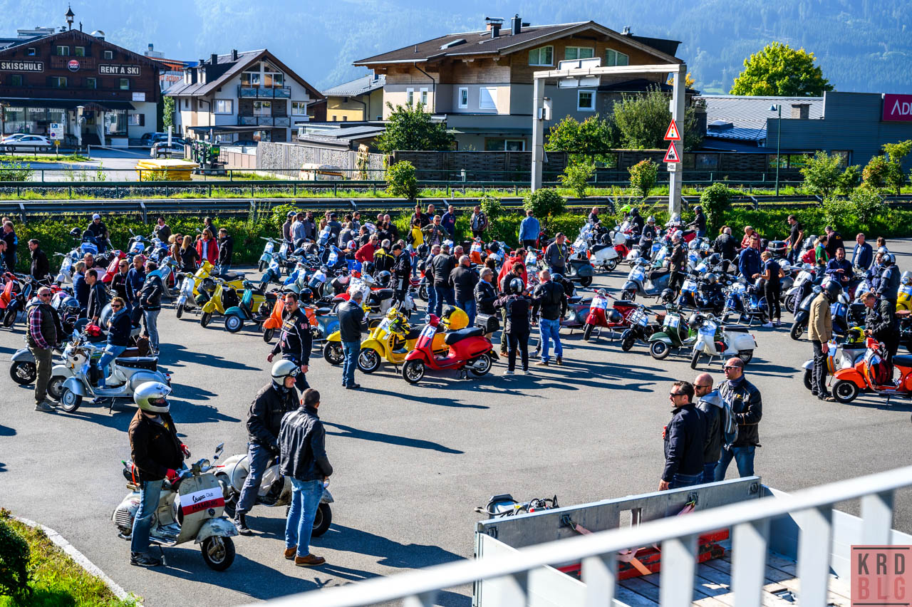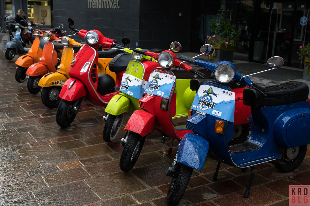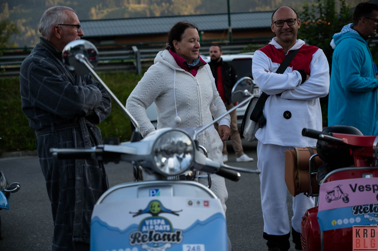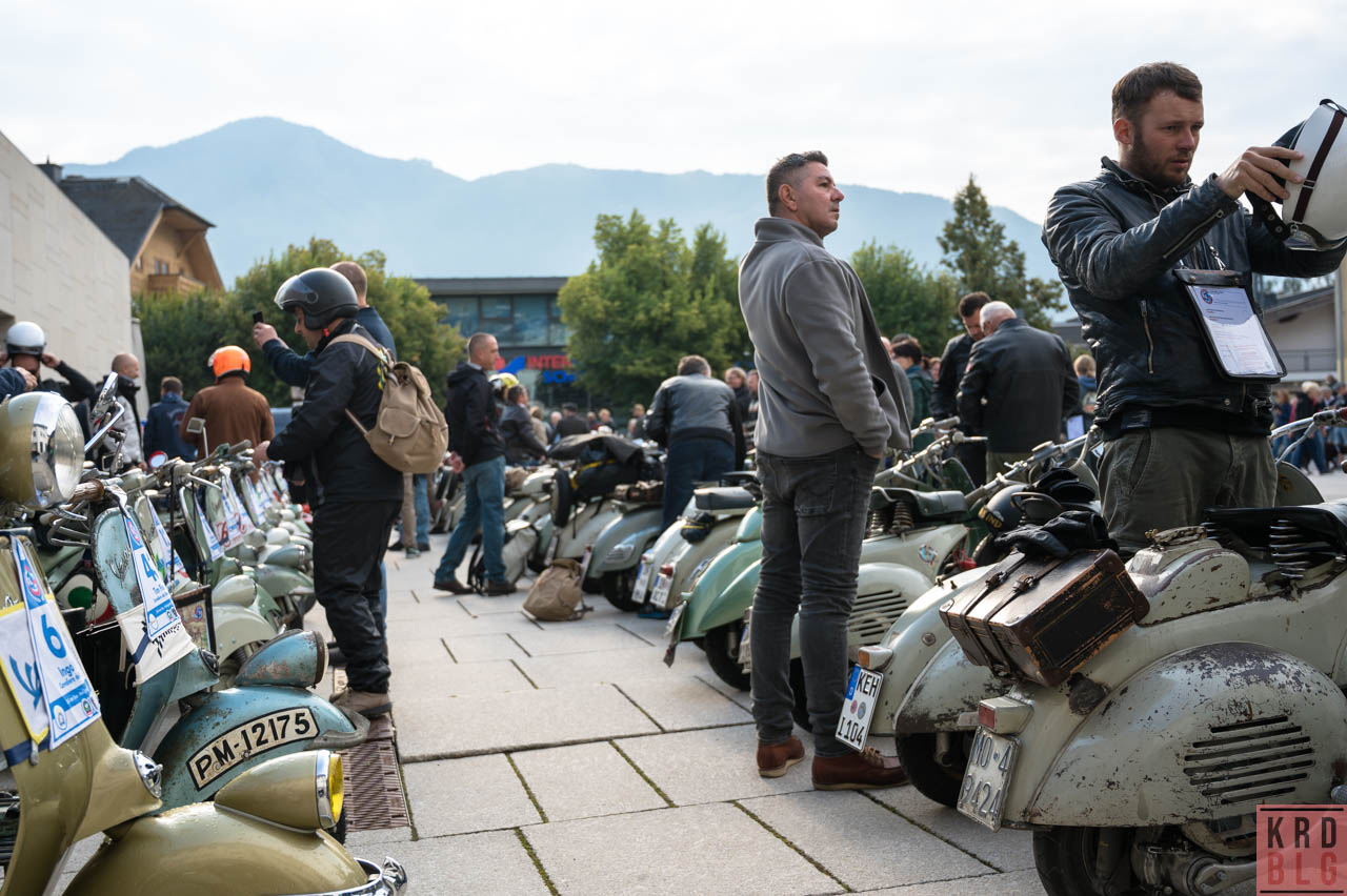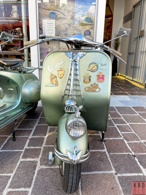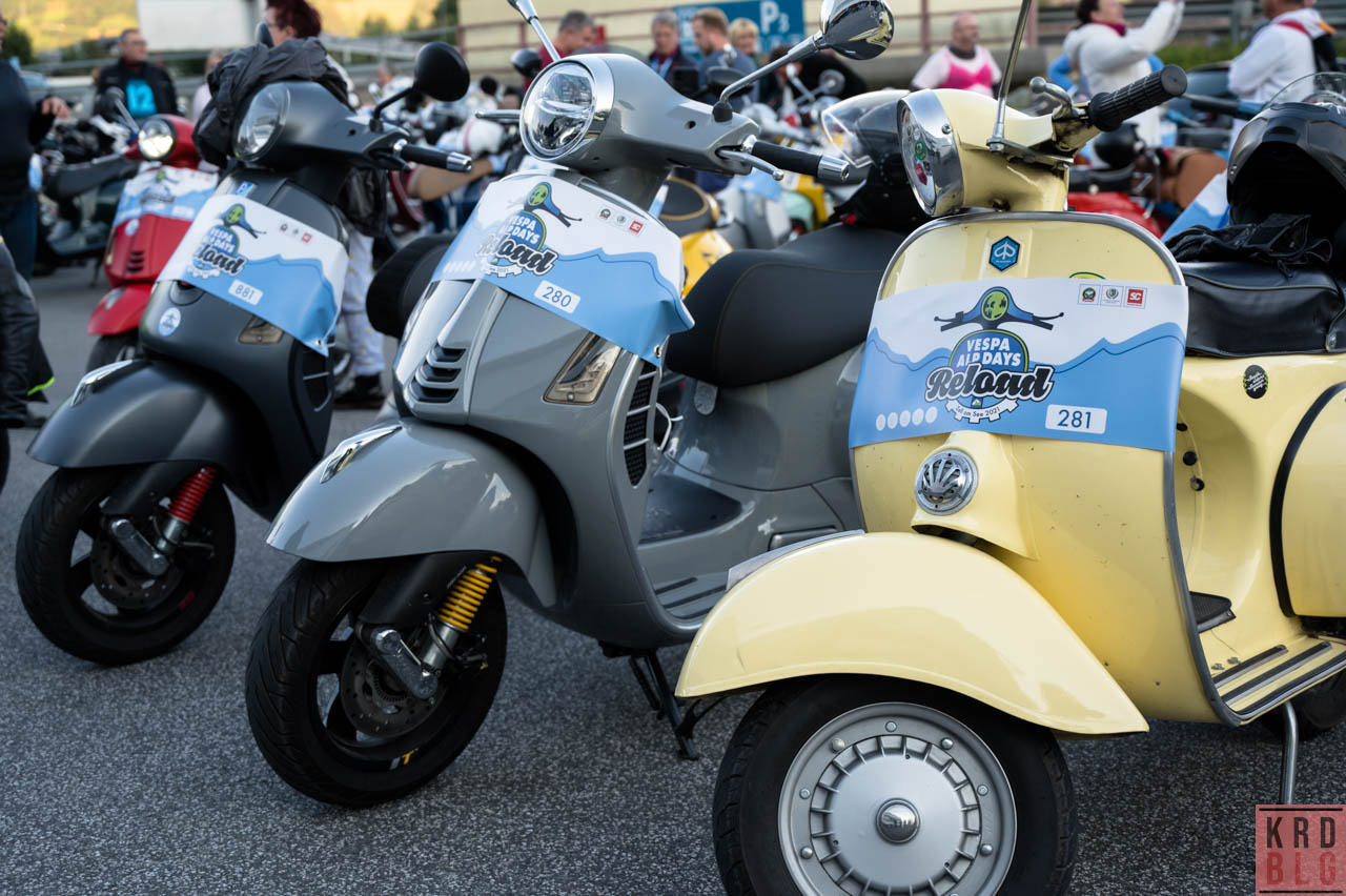 Zieht man also diverse Maut, das T-Shirt, Sticker, Plaketten, Schildbanner und Co aus dem Begrüssungspaket ab, relativiert sich das Nenngeld wieder und bietet dem, der es mag, einen netten Gegenwert. Nach dem Check-In, bei dem man sein Begrüssungssackerl erhält, bekommt man auch das Schildbanner für die Vespa, mit der man während der Veranstaltung direkt in die Fussgängerzone einfahren kann. So muss man nicht umständlich irgendwo einen Platz suchen sondern stellt seine Karre einfach neben das Eiscafe und hat Helm, Jacke, etc. im Blick (nicht dass das notwendig wäre) und kann so von Cafe zu Kneipe und weiter ins Restaurant rollern und hat seinen Kram immer dabei. Eine sehr praktische Regelung.