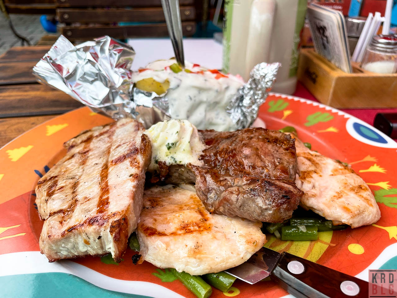 Wer rauf fährt, muss auch wieder runter .. und was essen .. ist so. Also vor dem drohenden Regen den Abstieg ins Tal und erstmal die Plautze füllen.