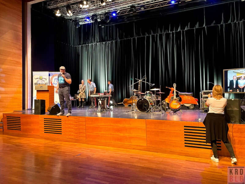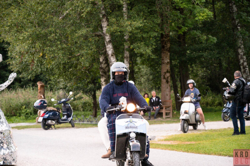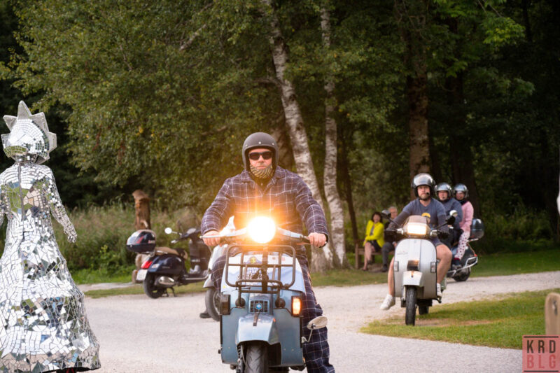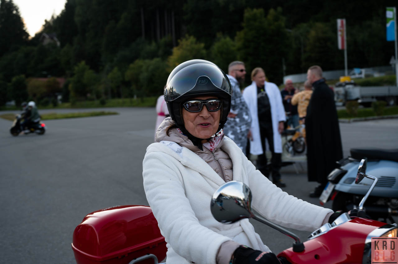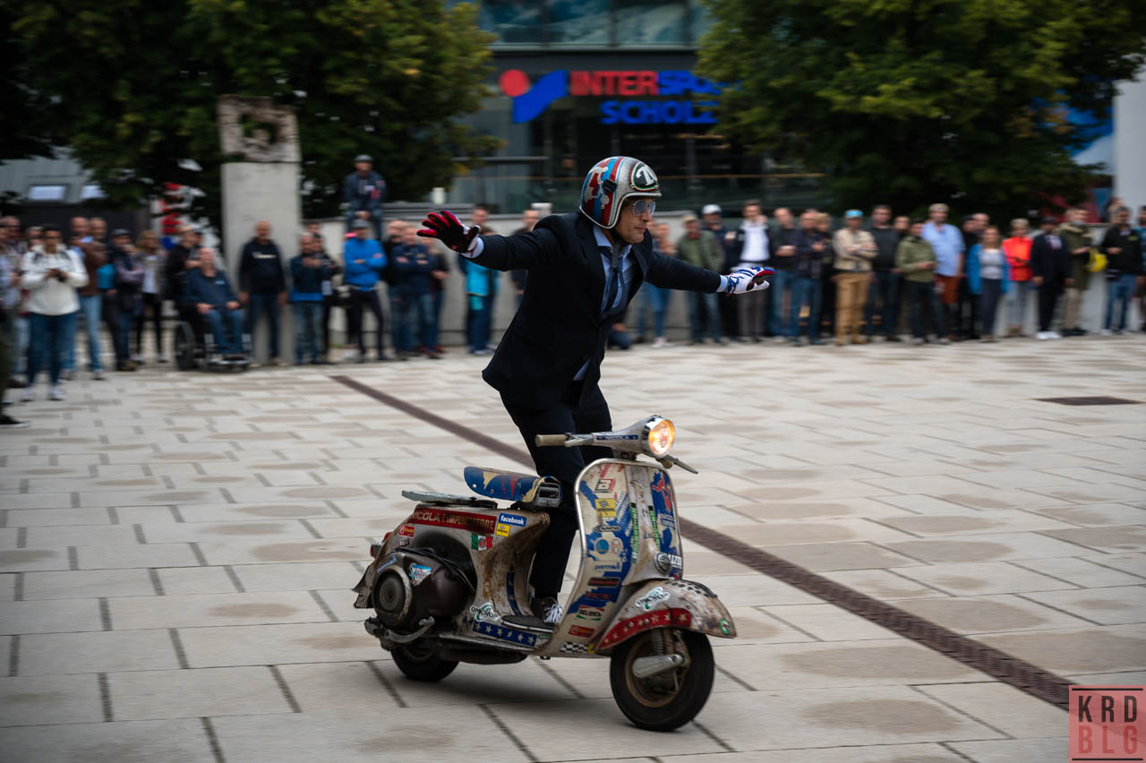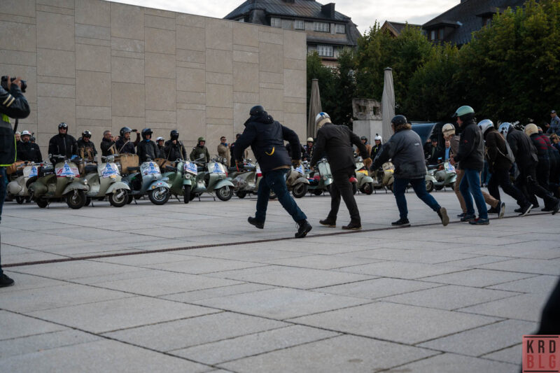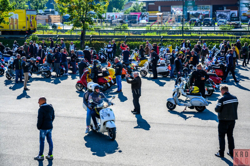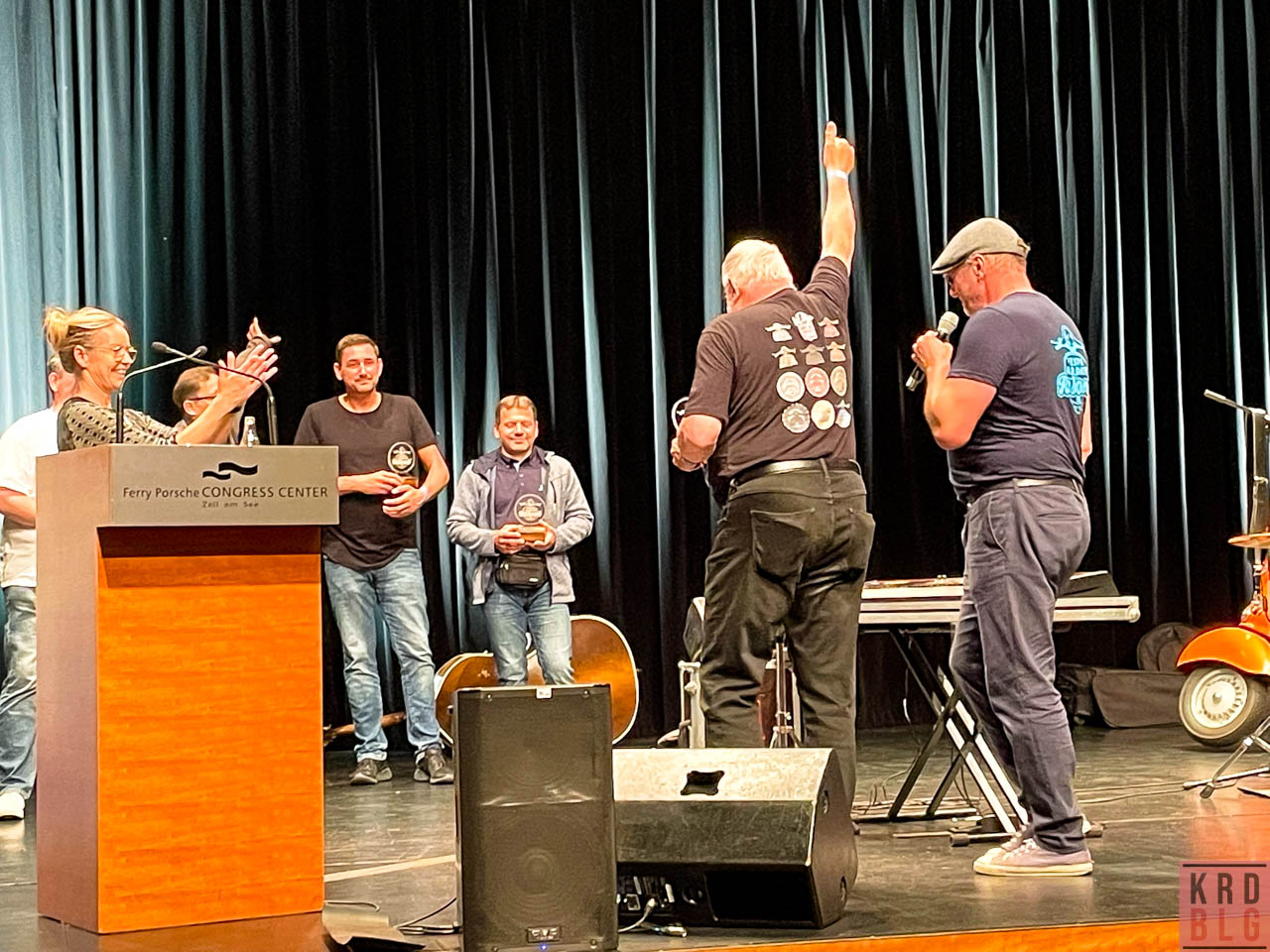 Stuntshow, Party im Congress Center, Verlosung einer Vespa Rallye und Ansprachen runden den Samstag ab, bevor am Sonntag Friedemann Steck (ja, der vom Vespacorso München) DriveThrough Beichten abnimmt und die Rollersegnung vornimmt.