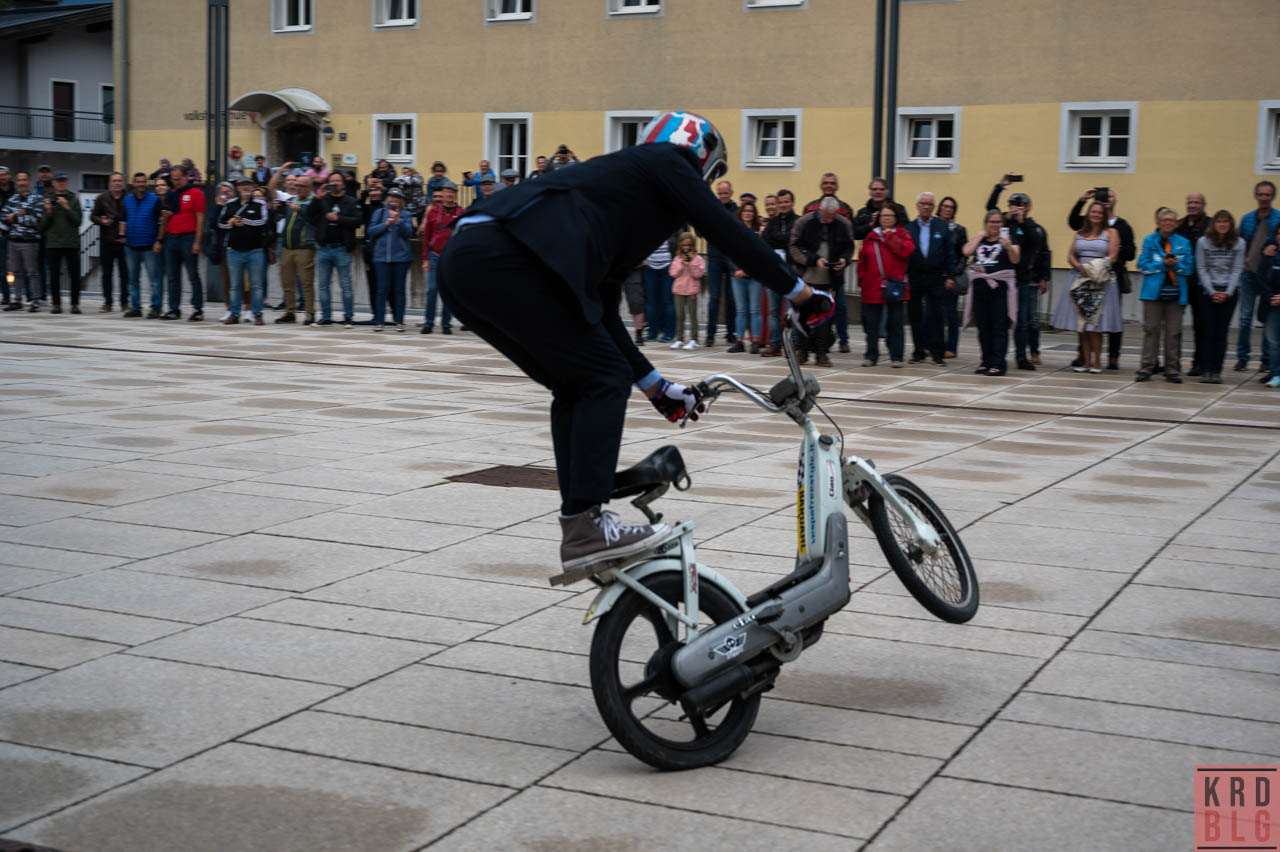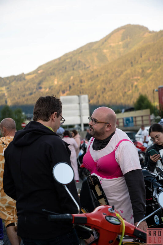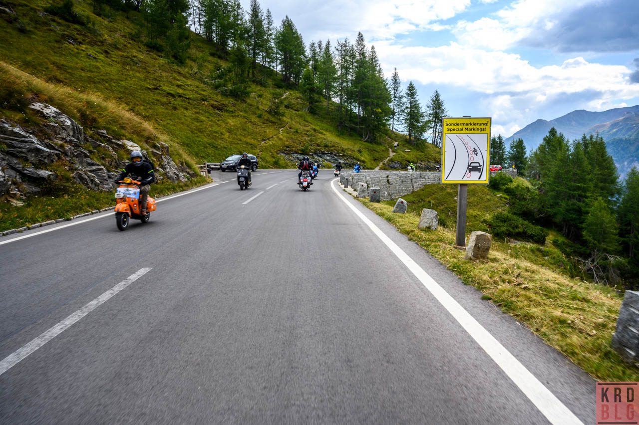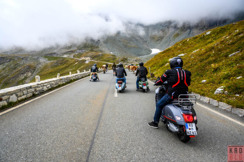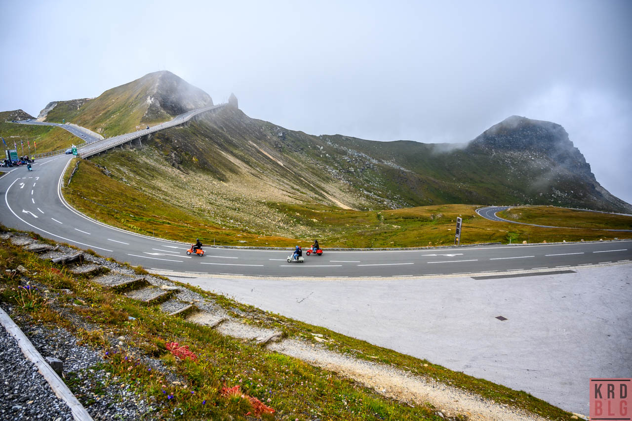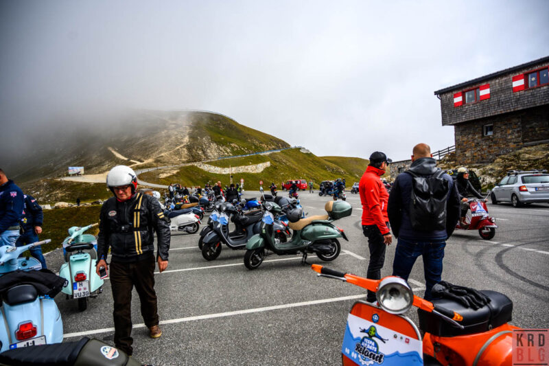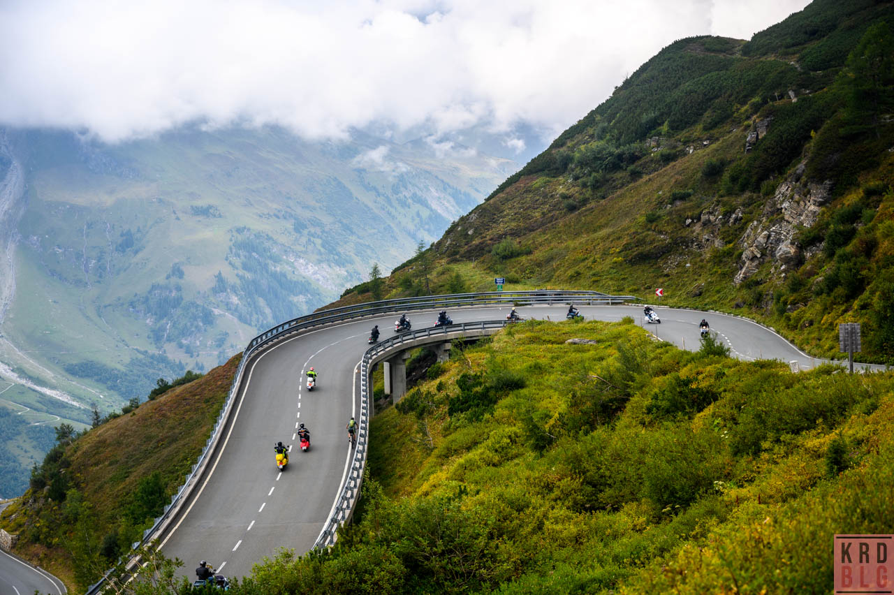 Samstag ist dann traditionell (ich rekapituliere hier Informationen aus zweiter Hand, da ich noch nie vorher dort war) der Grossglockner am Start. Inklusive des Bergpreis Rennens der Alten Garde auf den Rohrlenkerrollern.