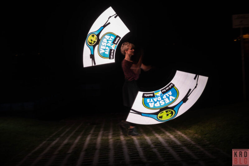 Am Donnerstag Abend gab es neben der Plüsch-Murmeltier Jagd den Pyjama RideOut, Jeder fährt, wenn er mag, mit Nachtgewand und Schlafmütze oder einfach in normaler Montur. Zum Abschluss gab es eine Licht– und Musikdarbietung von zwei jungen Damen, direkt am Seeufer.
