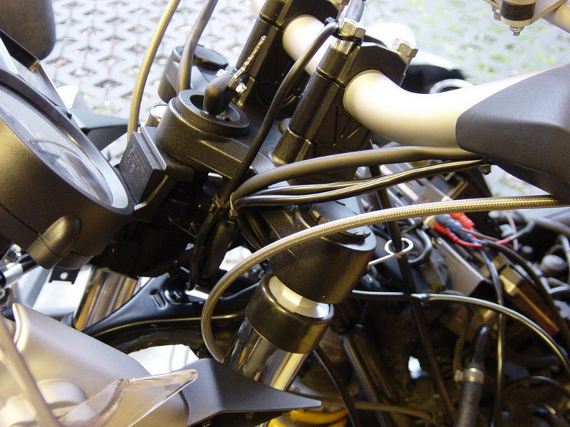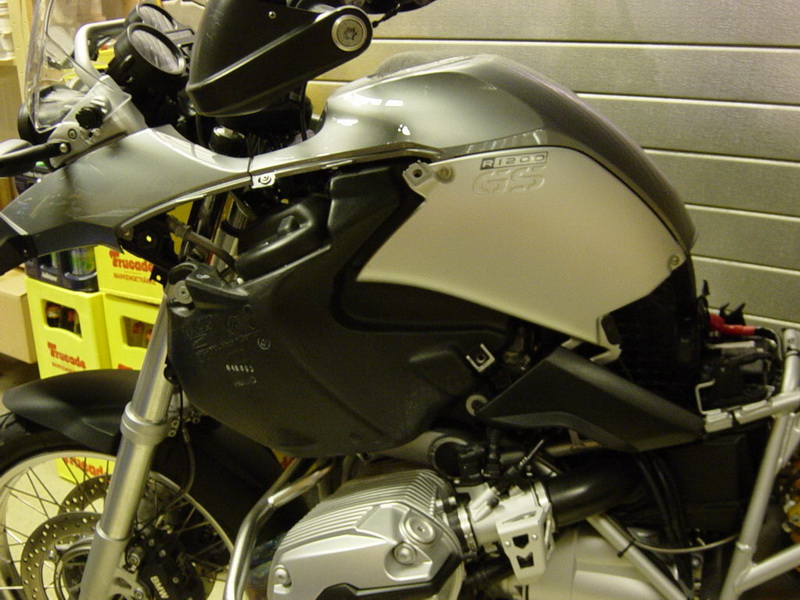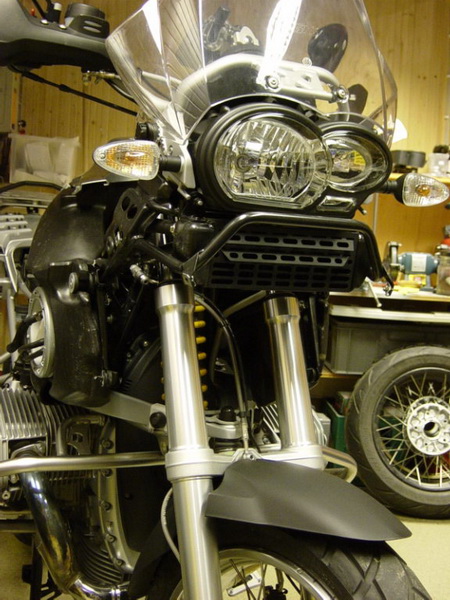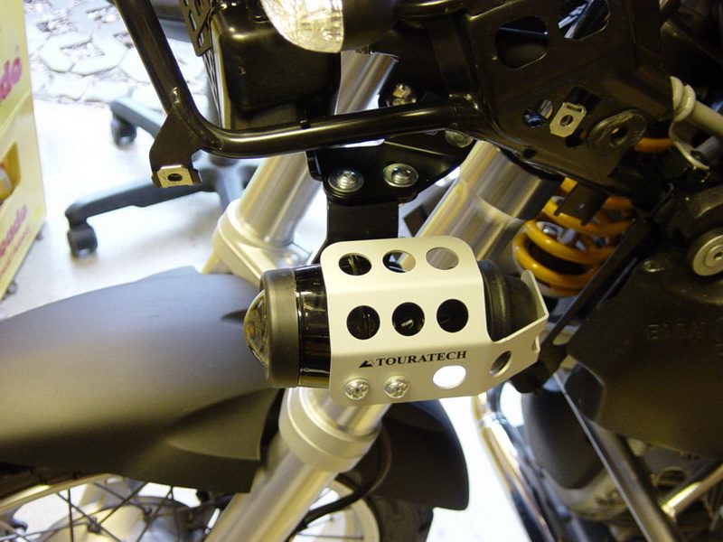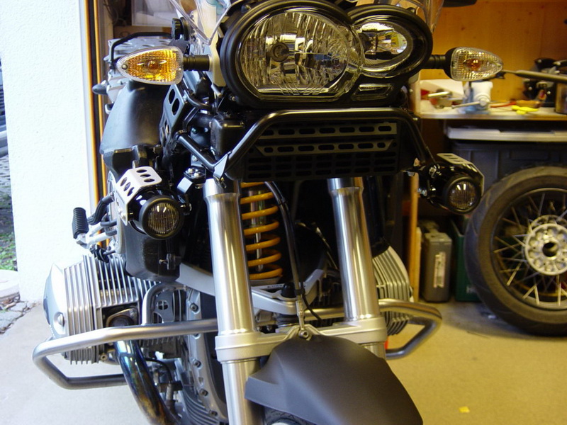 Sehen und gesehen werden. Wichtiger als eine optimierte Ausleuchtung vor mir, denn der H7 Scheinwerfer der 1200er ist schon verdammt gut, ist die Erkennbarkeit fuer die Schlafmuetzen auf den Strassen. Es gibt immer noch genug Menschen, deren Fuehrerschein im Kaugummiautomaten mit rausgekommen ist und die einem das Leben schwer machen. Also lautet das Gebot der Stunde, wenigstens gut sichtbar sein. Hier also der Anbau der Nebelscheinwerfer von Touratech an der R 1200 GS.