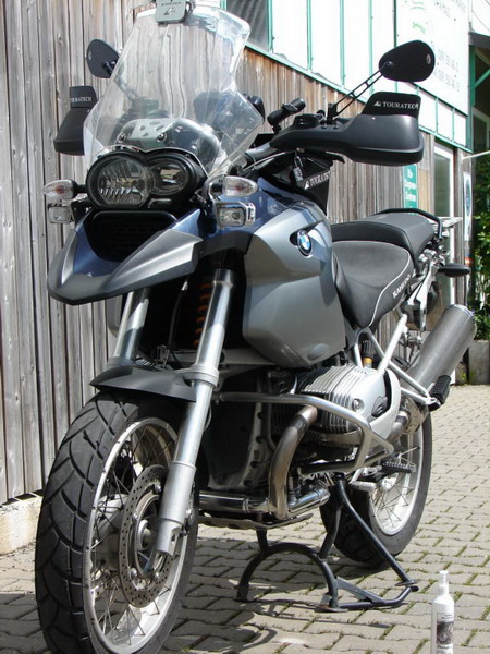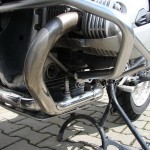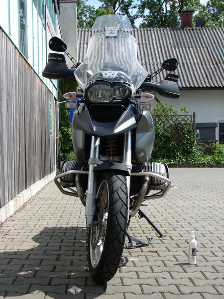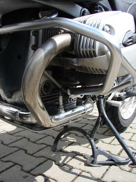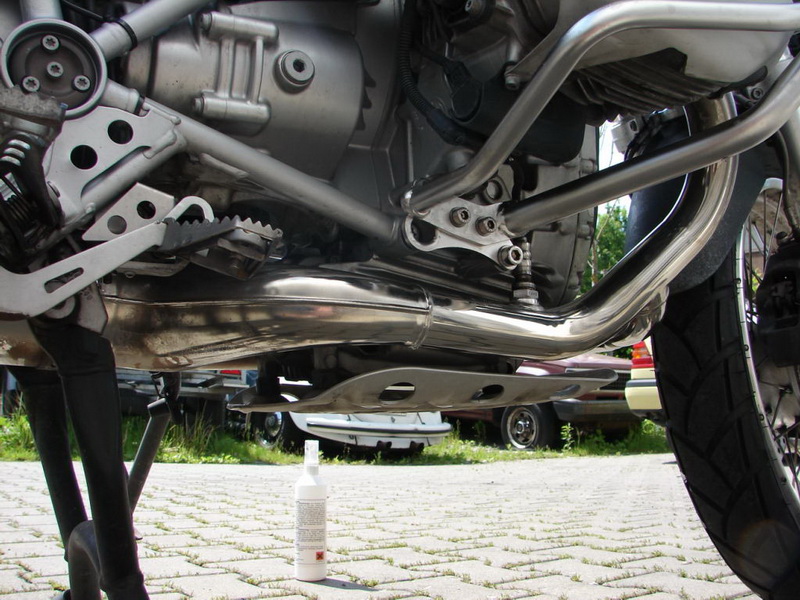 die erste 1200er hatte Edelstahlkruemmer, die neue dann zum Glueck die verchromte Variante. Edelstahl hat hier leider den Nachteil, dass es sich verfaerbt und zwar von guelden nach braun. Spoetter behaupten die Zylinder saehen aus, als wenn die Kuh gerade .. naja, lassen wir das. Es gibt ein Wundermittel Reinigungsmittel namens Optiglanz, welches ich natuerlich in meinem Putzwahn ausprobieren wollte, mit erstaunlich gutem Resultat. Allerdings die Warnung: Niemals! auf Kunststoff gelangen lassen. Aber ansonsten richtig brauchbar. 4 Bilder vorher, 4 nachher.