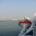 kurz nach 16:00h geht es dann auf die faehre, schnell plaetze fuer die moppeds ganz vorne gesichert um schnell aus dem bauch des kahns zu kommen wenn man am ziel ist und dann ein geknickter nils … er hat sein schaffell am hafen auf einem betonpoller liegen lassen und muss nun ohne reisen. im land der schafe sollte das aber zu loesen sein.17:00h alle an bord, alles verzurrt, alle in der bar und die reise beginnt nun endlich richtig. die faehre legt ab und wir werden in 18 stunden den zielhafen erreicht haben.