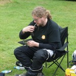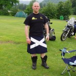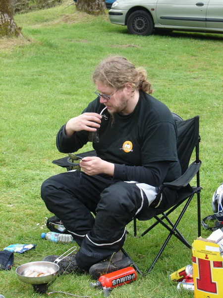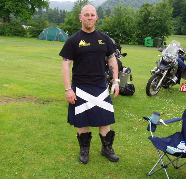 Samstag 09.06.07 08:00h Aufstehen und zu Allister zum fruehstuecken. traditionell schottisch aber ohne haggis und black pudding saettigen wir uns und raeumen dann unser quartier nachdem wir uns herzlich und ueberschwenglich verabschiedeten. einkaufen fuer die ueberfahrt in einem megasupermarkt vor den toren von rosyth und dann das anstellen am faehrterminal. ob der hitze kletter ich aus meinen moppedklamotten und lege den kilt an. eine wohltat, nur beim fahren auf dem mopped, wenn es mal wieder 5 meter weitergeht, eine nicht ganz einfache geschichte.
