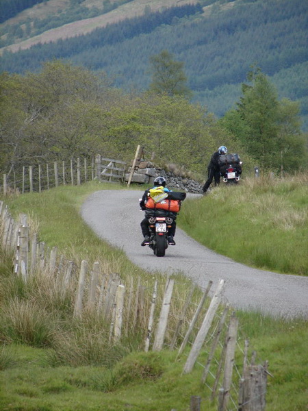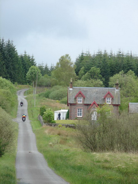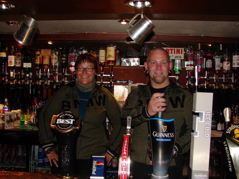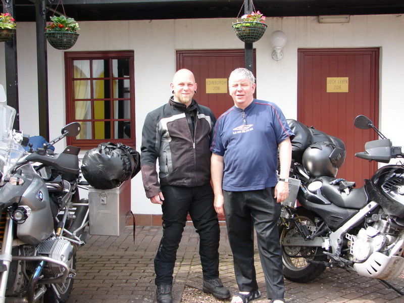 Dundee, die 4. groesste stadt in schottland um viktor aufzuheitern, der nach der ankunft in schottland vor 4 tagen mit schweren oelleckage am endantrieb hier strandete. nachdem wir gemeinsam gegessen haben fahren wir weiter nach lochforgan, wo wir fuer die letzte nacht in schottland ein kleines hotelzimmer im lochforgan coaching inn bezogen haben. allister der wirt ist ein mopped fan und faehrt selber noch viel auf seiner alten honda. wir trinken und lachen bis spaet in die nacht im pub mit alan, dave, goerge und einigen anderen, singen the flower of scotland und fallen um 02:00h morgens dann erledigt ins bett.