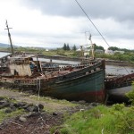 mullaig. eine vertraeumte kleine stadt und darunter ein riesiger strand, an dem der herr connery mit einem hirschen rumlief. hochlaender eben. heike sammelt muscheln, e. und a-punkt trinken hartz IV bier und nils brutzelt am strand stockfleisch aus toten hammeln nach tuerkischer art. ich hole mir einen sonnenbrand. fuehlt sich kacke an, tut auch weh.