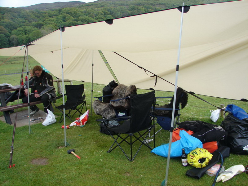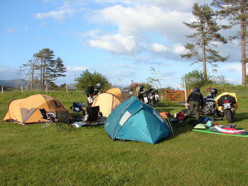 mit nils als guide fahren wir in einer geschlossenen 5er gruppe in richtung nordwesten und kommen schon bald am queen lisbeth ihr seinem nationalpark an, den wir durchqueren. ein wenig spaeter dann der stop am grabe von rob roy, welches weit weniger spektakulaer ist als ich erwartete, ergreifend ists aber dann doch. hier auf dem parkplatz dann das erste mal ein midgie. eine kleine, etwa 1 mm grosse fliege, die beisst und man davon kleine rote und juckende pickel zurueckbehaelt. davon, so nils, erwarten uns in den naechsten tagen noch mehr. abends bauen wir unser zelt in cobeland auf, ein kleiner netter und sauberer campingplatz in der lisbeth ihrem nationalpark. alles ist so nett und sauber und toll und dann kommen die midgies. ganz ehrlich, in dem moment war der urlaub fuer mich gelaufen, es sind tausende kleine scheisser, die in augen, ohren und nase fliegen und beissen und einem den abend so richtig versauen. 20 meter weiter campen ein dutzend junger schotten und essen und trinken und es ist anscheinend kein einziges midgie dort. das will ich wissen und gehe hinueber um nach dem grund zu fragen. midgies moegen keine citronellafackeln und rauch lerne ich und man gibt mir 3 raeucherfackeln mit, wovon wir eine anzuenden und es wird tatsaechlich besser, wir koennen kochen, essen und ruhig ins zelt klettern.