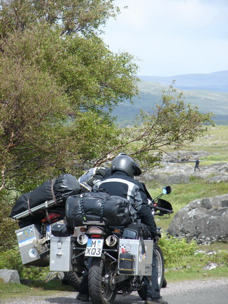 dort helfen die drei uns beim aufladen der moppeten und dann trennen wir uns wieder. diesmal leider fuer laenger, denn wir muessen nach muenchen und die drei anderen nach dortmund. gegen mitternacht fahren wir nach 1000 km anreise, 2300 km schottland und weiteren 1000 km heimfahrt wieder in unsere strasse und stellen fest, das ausser einem ubervollen briefkasten nicht viel passiert ist.