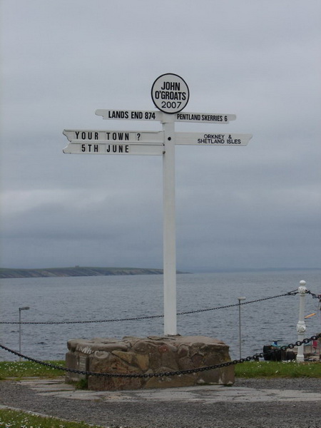 John o Groats, 90 meilen einfach und nach etwa 50 meilen sind die berge einer flachen langweiligen landschaft gewichen. in john o groats dann ernuechterung. es ist ein kleiner faehrhafen auf die orkneys und 5 souvenirlaeden. also wieder 90 meilen retour. war trotzdem schoen.